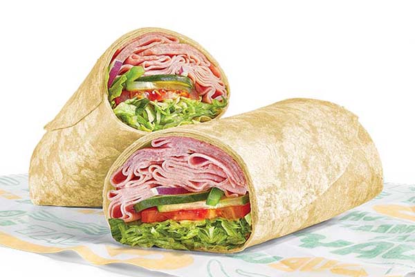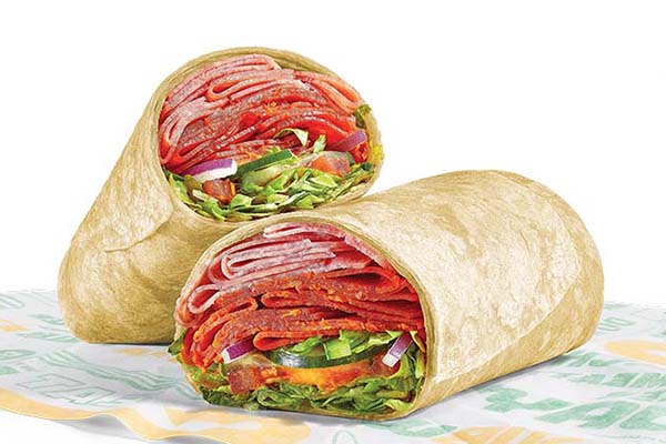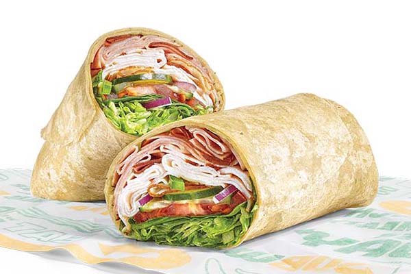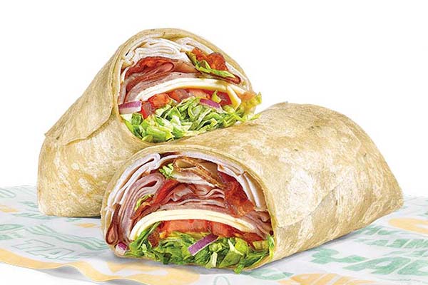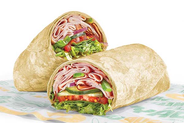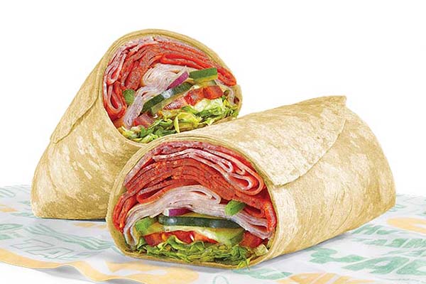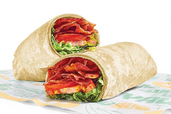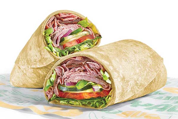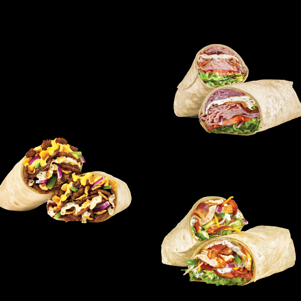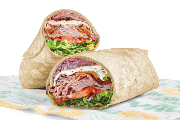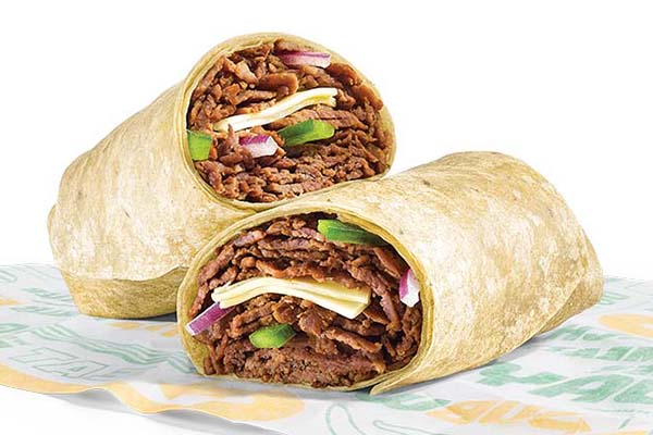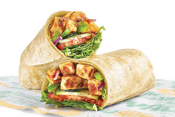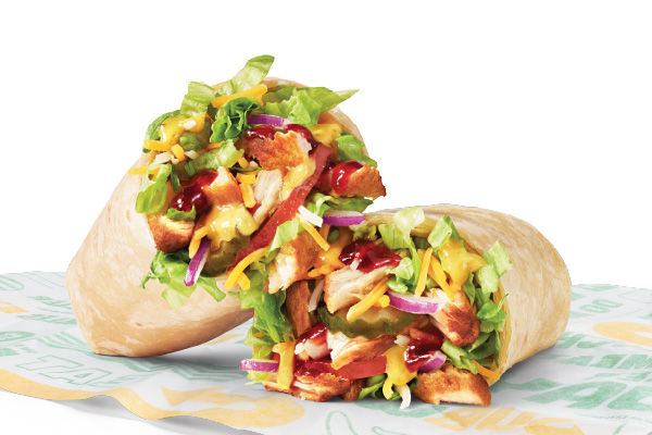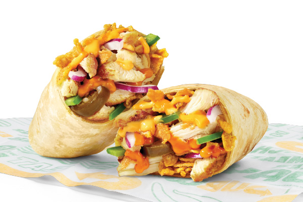 Rotisserie-style chicken, Cheddar cheese sauce, crisp red onions, green peppers, jalapeños, SubKrunch™ and Creamy Sriracha, wrapped in a flour tortilla.
