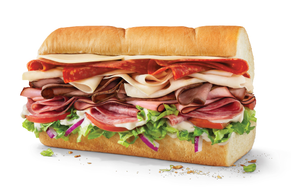 Footlong, Artisan Italian, Pepperoni, Genoa Salami, Oven Roasted Turkey, Black Forest Ham, Roast Beef, Provolone, Lettuce, Tomatoes, Red Onions, Regular Mayonnaise