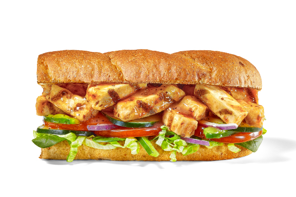 6'', Toasted Hearty Multigrain, Sweet Onion Teriyaki Chicken Strips, American Cheese, Lettuce, Tomatoes, Red Onions, Sweet Onion Teriyaki