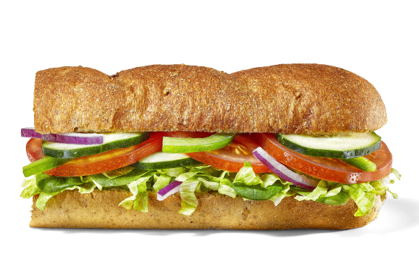 6'', Hearty Multigrain, Provolone, Lettuce, Spinach, Tomatoes, Cucumbers, Green Peppers, Red Onions